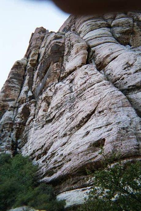 The white line on the picture to the right indicates the climb: Don't Touch That In Front of Grandma.