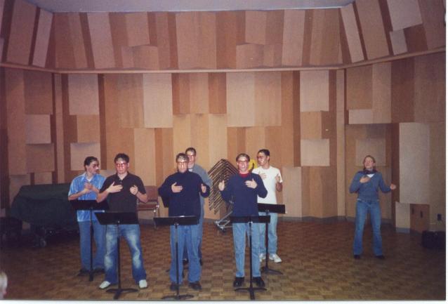 To the left, a student driver maneuvers through traffic in UNLV's 2001 production.